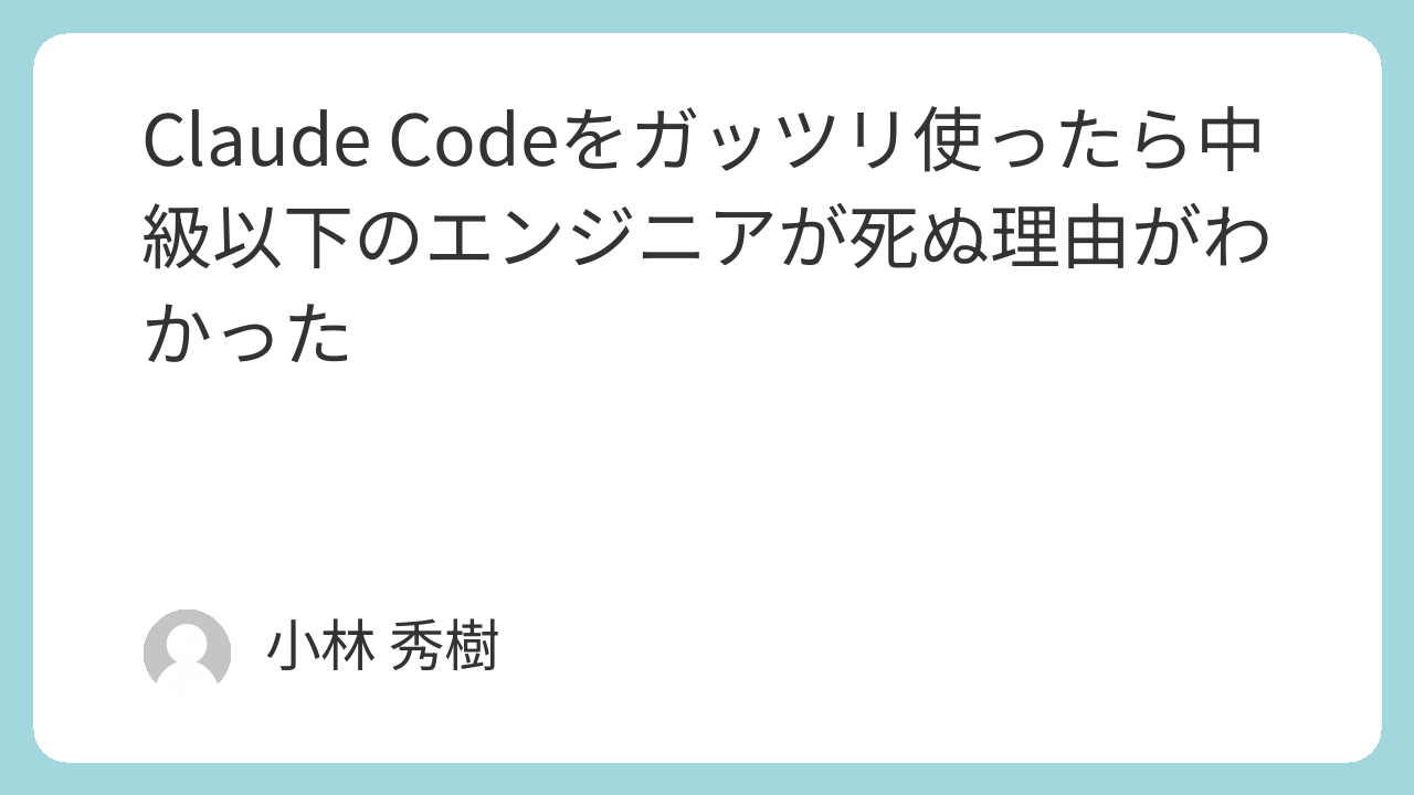 Claude Code 自体は強力なツールですが、“使い手のリテラシーが質を左右する”のはどんな環境でも同じですね。