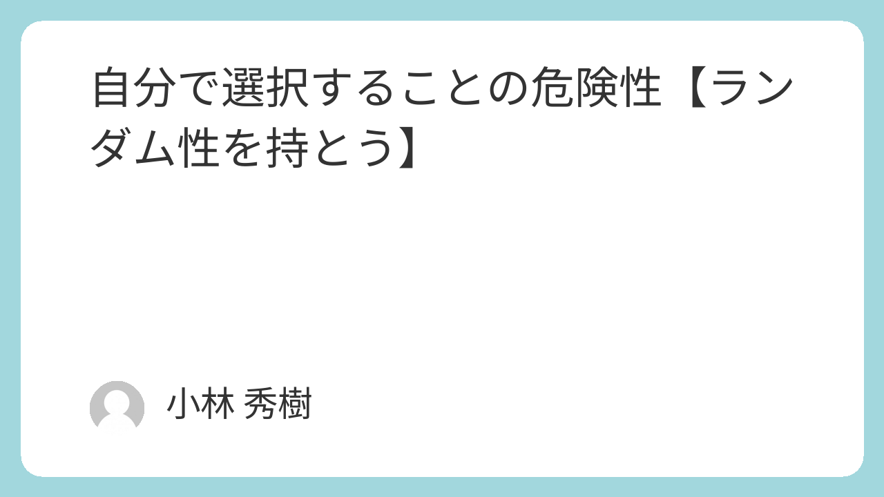 自分で選択することの危険性【ランダム性を持とう】
